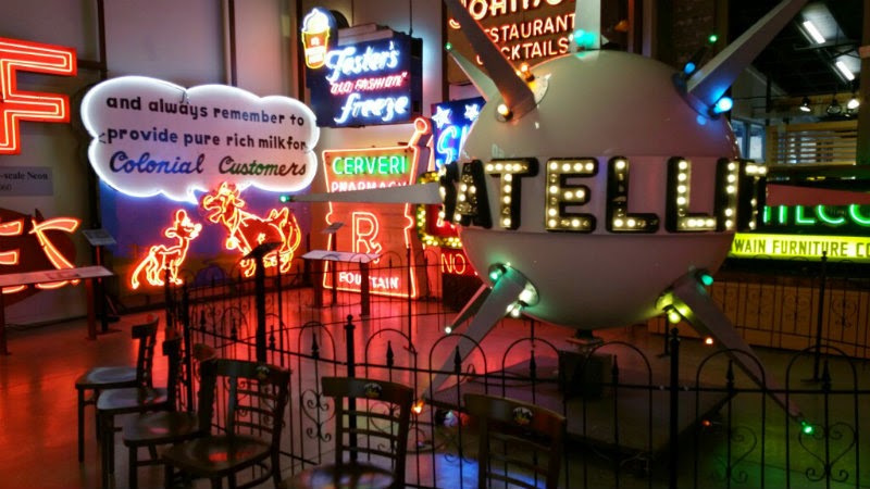 A friend of mine and I were looking for something cheap slash fun to do last week and after very little research I found way too many options to even choose from. Shows, exhibits and poetry readings were happening all over this glorious city and they're all now sitting patiently in my phone notes waiting to be explored. We ended up at the American Sign Museum. Cincinnati people, have you ever heard of it? It's pretty fantastic. It's on Monmouth street over near Clifton-ish and it's just a warehouse filled with old signs from god only knows when. They're organized by era and it's pretty cool to walk through. We saw photos of people that had booked the place for weddings and parties and I couldn't help but think that was the best idea ever. I mean, the photos were sooo gorgeous. Anyway, go. Go as soon as you have a Sunday afternoon to spare. Say you're a student and get like $5 off. I opted for the self guided tour because I'm not really one to pay attention when someone is trying to teach me something. I would rather read along slowly and to myself. We took plenty of pictures but mostly they all look the same. Just bright neon signs of beauty. When you first pull up, you'll be greeted with an Arby's sign the size of your car and a giant bucket from KFC. So random. I know. But we liked it. I love finding random things around this city, though it's slightly embarrassing to find things that have been here for years that I had never heard of. Like, where have I been?